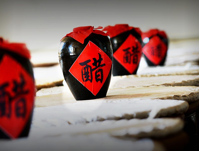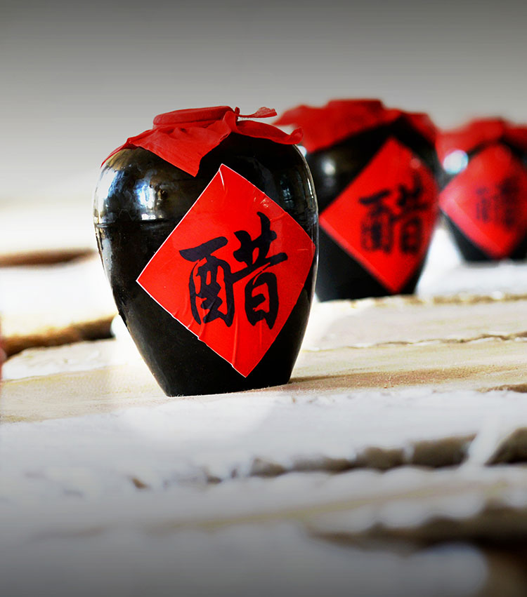 蔭城鐵府陳醋以?xún)?yōu)質(zhì)高粱、玉米、小麥、小米為原料,以?xún)?yōu)質(zhì)谷糠、大麥、豌豆、麩皮為輔料,經(jīng)微生物制曲、糖化、酒精發(fā)酵、21天醋酸固態(tài)發(fā)酵等多道傳統(tǒng)工藝流程精心釀制而成。